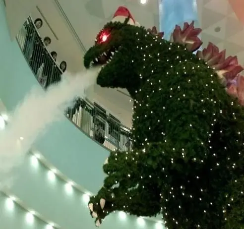 Although decorating the tree for Christmas is festive, I believe making it look like a monster would scar the kids for life…especially in Japan. In 2000, at the Aqua City Odaiba shopping mall, located in Japan, the holiday decorative committee decided to construct a christmas tree in the shape of Godzilla. Not only did they shape it to look like him, but red lights were put in the eyes, and the tree even breathed smoke. I think the only thing that doesn’t make him scary is the little Santa hat on his head.