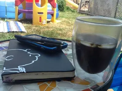 Hot time summer in the city. With the temperature baking and three days set to broil, how do you cool off? We rock a nice tall glad of iced coffee, and unplug for a bit. Sketchbook in hand, glass by my side.