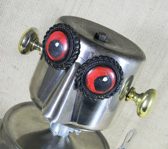 Will Wagenaar, has a gift for making art from Scrap. You can find his beautiful brand of art of at Etsy, where he goes by reclaim2fame. His creation Brenda is shown here as an evil little robot, built entirely from left over parts
