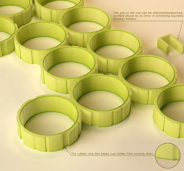 I think we’ve all been in the position of having to carry a load of coffee tea or beverages of our choice back to a group of waiting people. No one ever takes into account the hand to cups requested ratio. This spiffy design simplifies the math involved by introducing interlocking coffee cup sleeves. So just set up your array of coffee cups in however you would like to carry them and away you go!