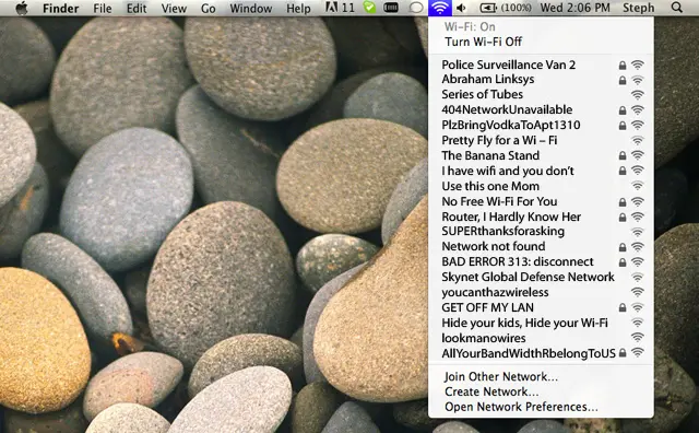 Mashable has put together some fo the best wifi names they have ever spyed upon. User submitted content and a keen interest in pop culture have created a list to end all lists. Have you seen anything better?