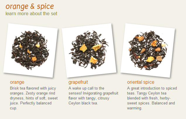 "Create tasty and eye-catching tea blends with our unique 'mix & match' set. Included are three teas and six colorful inclusions. Combine these in myriad different ways to produce an interesting mosaic of flavors and colors. Yields about 30 cups of tea, each uniquely yours!"