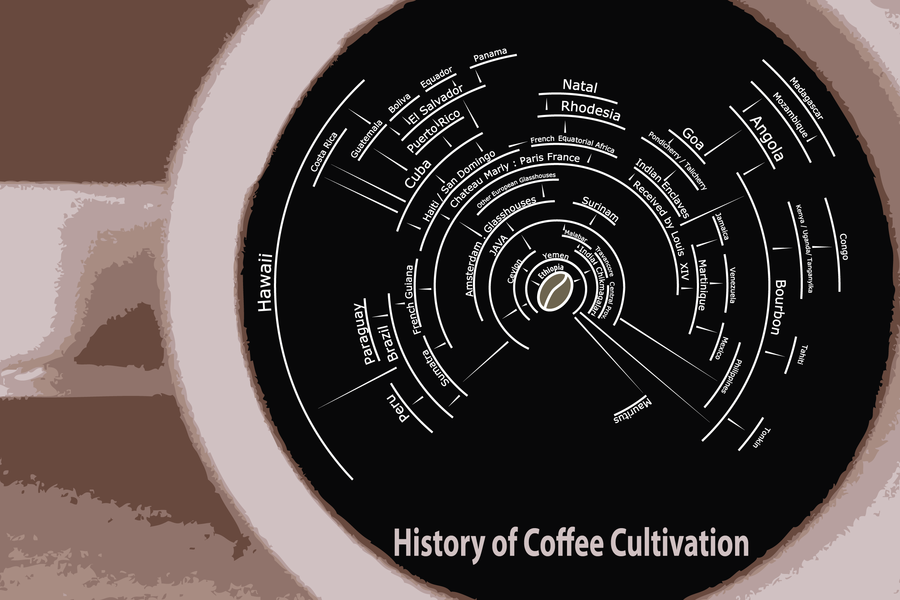What are you looking at? Well this is an infographic showing the spread of coffee out of Ethiopia. what i love about this poster is the crazy spread and the exotic locals that coffee was cultivated in.
