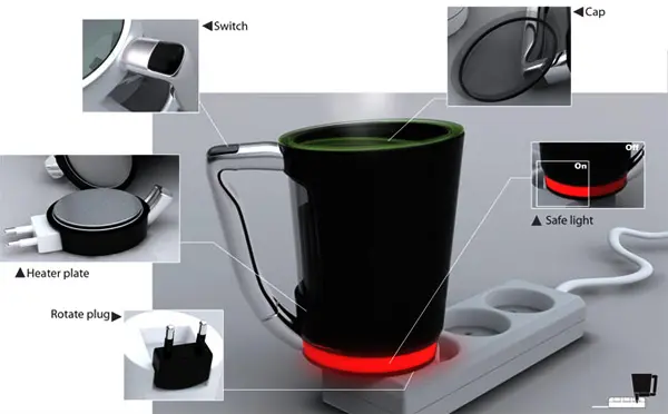 There are a couple of neat features, one of which being the heating element detaches from the mug to make for easy cleaning. And a switch to turn the mug on and off, but the proximity between coffee and electric will always make this a no go for me. How do you think?