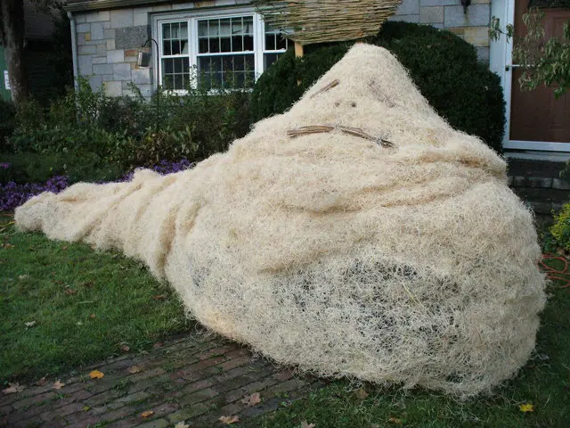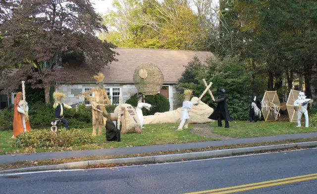 It’s Star Wars in Straw form. Full on. A Chewbacca, Han Solo, R2D2, Emporor, Storm Trooper. And all it cost them was their time. This is how you do your yard up right