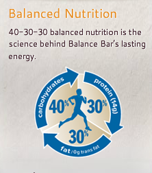 Claims: I was satisfied, and though I’m not in the habit of needing anything with my coffee this treat did seem to fill a gap in my day when i was running around without killing my Diet. (Weight Watchers people, the bar is 5 points, I calculated it) Full nutritional information here. Balance bar claims that their bar follows the 40-30-30 plan, which means 40 percent carbs, 30 percent protein and 30 percent fat.