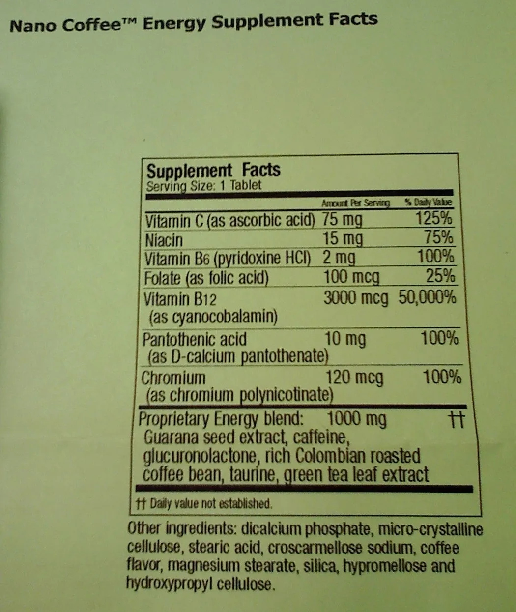 After taking the supplement the first day I decided to consult with some medical professionals, who for the sake of this article sent me some links to educate myself more on the contents of the nutritional label for Nano Coffee. Which you can see below.