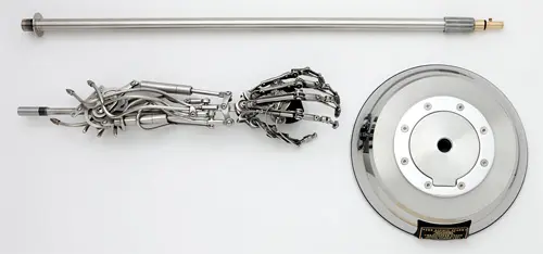 In a commisioned piece Three Days Grace leads singer Adam Gontier asked Chris Conte to create for him a mic stand with a robotic arm. The fun thing about this is that the stand you see is actually the second version the first was a right arm and hand, and the singer asked for a left to be created instead…