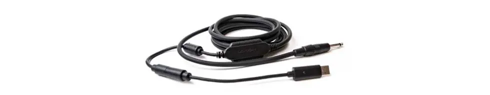 Enter Rocksmith. A game where you plug your real guitar into your Xbox 360 or Playstation 3 or even your PC! It comes with a cord with a 1.4 inch jack on one hand and a USB jack on the other.