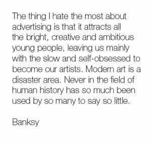 I like the idea of art, its just the practicality of it bothers me quite a bit. The more I look at some of the truly awesome people in the world doing awesome things the more I find comfort in their work. Bansky does some incredible work, and lives a life separate from his art, despite all of it. Hey he could even be Tony Blair for all we know. People would argue Banksy might loose all popularity if he came out of hiding, But on the flip side the space is full of obsessed “me first” people. Uploads to Deviantart and its like usually end up circulating among you’re clique, and not beyond. Try as you might those pieces won’t live beyond your circle. I’m part of the problem. I upload stuff to collectives and move on, I hope something catches fire and people pay attention, but I don’t actively curate the work of others, and this is my fault, as much as it is yours. Have you spent time giving kudos where they are needed? Looking with a critical eye at others stuff, stepping outside your comfort zone? I didn’t think so.