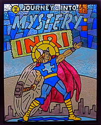 He has taken great pains to recreate Iconic scenes from Comic Book Lore in Stained Glass. Action Comic Superman’s Debut? Check, The Fantastic 4? Thor? Even a little TMNT love thrown in there with a DaVinci Bebop mashup. Fantastic Work.